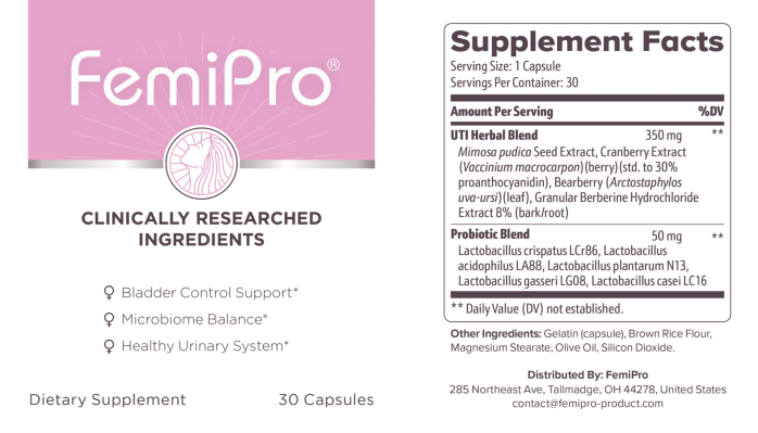 Each ingredient in this supplement is backed by research that highlights its effectiveness in promoting overall urinary well-being. Together, they create a synergistic effect that not only addresses current concerns but also helps prevent future issues. By choosing FemiPro, you are investing in a holistic approach to your health that prioritizes comfort and balance.